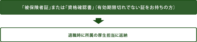 ※退職者の方は退職時に所属の厚生担当に返納。任意継続保険の「被保険者証」または「資格確認書」(有効期限切れでない証をお持ちの方)はNTT健康保険組合に返納。