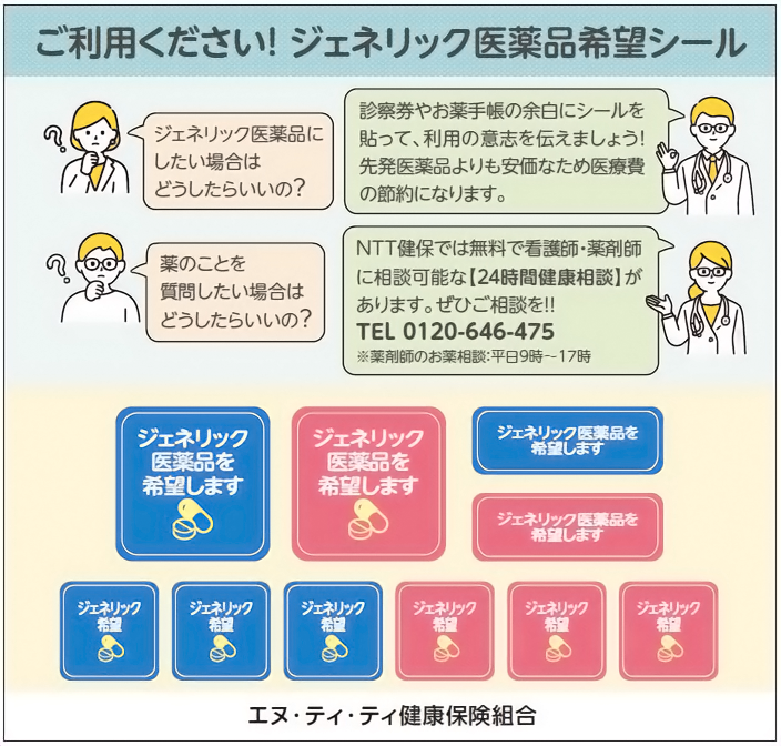 NTT健保組合では、ジェネリック医薬品への切り替えにより、ご本人負担額が軽減されるなどの一定の条件を満たす方に対し、個別に「ジェネリック医薬品利用促進通知」を発送しています。