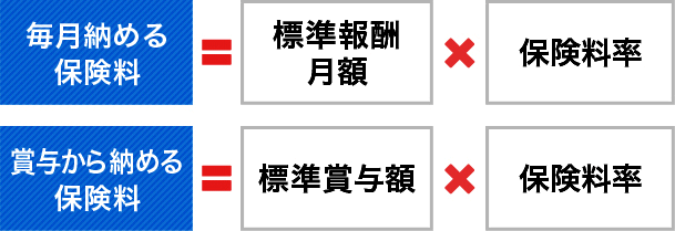 健康保険に関する保険料には健康保険料と介護保険料があります。各保険料は、標準報酬月額および標準賞与額に各保険料率を乗じて決められます。