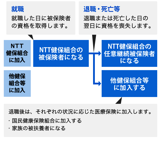 - NTTグループ会社(一部会社を除く)に就職すると、NTT健康保険組合の被保険者となります。
