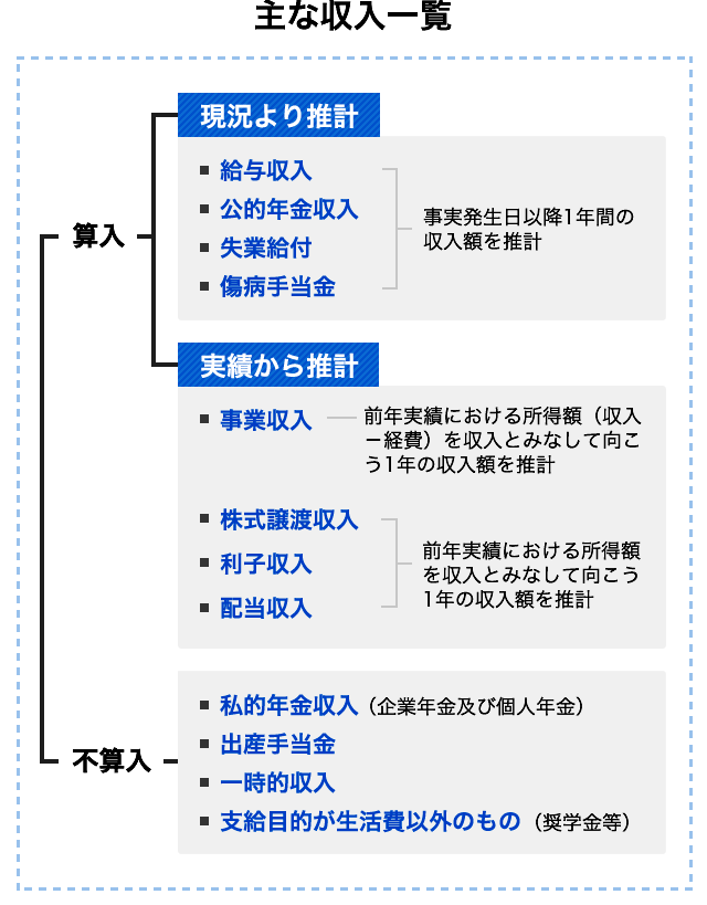 なお、年間収入とは、所得税法上の取扱い(毎年1月~12月)とは異なりますので、ご注意ください。